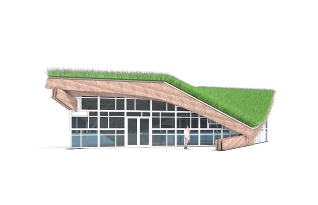 Bij de opbouw van het clubgebouw is uitsluitend gebruikgemaakt van hergebruikte materialen. De basis van de constructie bestaat uit dakspanten afkomstig van een voormalige landbouwschuur. Deze spanten zijn op een innovatieve manier op elkaar gestapeld, wat heeft geleid tot een speels en spannend ontwerp.