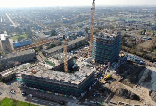 Het project heeft grote vorderingen gemaakt in het afgelopen jaar. De betonconstructie van fase 1 is bijna klaar. Deze fase bestaat uit een grote parkeergarage met daarop een toren van 65 meter, een toren van 33 meter en 2 bouwdelen van 5 lagen. Door de toren van 65m hoog te bouwen met een tunnelsysteem weet de aannemer een snelheid van één verdieping per zeven werkdagen te bereiken. Deze maand nog wordt het hoogste punt bereikt.