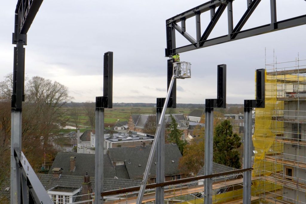 In onderstaande video is mooi in beeld gebracht hoe de dakspanten worden ingehesen.