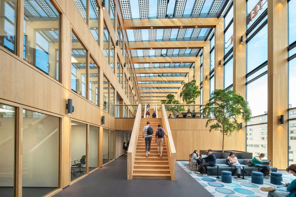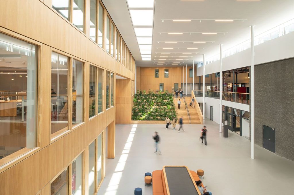 Woensdag 11 oktober is de nieuwbouw voor Rotterdam Business School aan de Kralingse Zoom officieel geopend. Een energieneutraal gebouw van 14.000m2, naar ontwerp van Paul de Ruiter Architects. Het is gebouwd door Heerkens van Bavel. Pieters Bouwtechniek was verantwoordelijk voor het constructieadvies. In 2020 is het ontwerp gestart en het project is een paar maanden geleden opgeleverd.