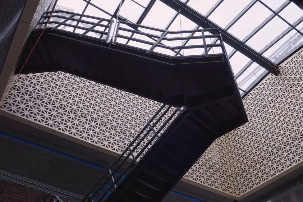 Het pakhuis is op het bestaande dak met twee lagen uitgebreid, vormgegeven als een sculpturale kroon die boven het gebouw lijkt te zweven.