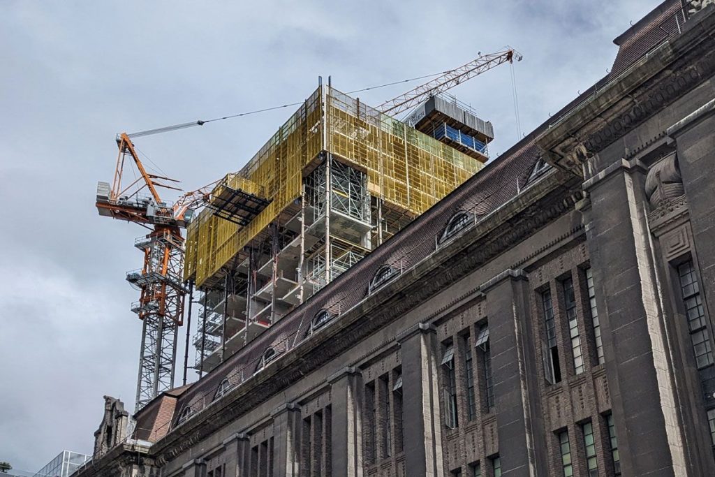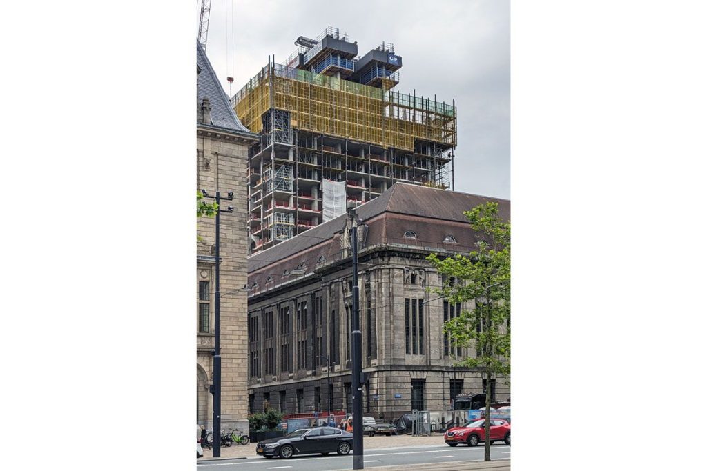 De bouw van POST aan de Coolsingel in Rotterdam is in volle gang. De toren begint vorm te krijgen, zoals te zien is op de foto's hiernaast.