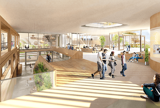 Sinds 2019 werkt een team bestaande uit SVP Architectuur en Stedenbouw, CROSS Architecture, Copijn Landschapsarchitecten, Pieters Bouwtechniek en Adviesbureau DWA in opdracht van Gemeente Utrecht aan het ontwerp waarbij een gezonde, groene omgeving centraal staat. Want niets is fijner voor kinderen dan een lekkere buitenruimte. Sterker nog, het terrassenlandschap is integraal onderdeel van het concept. Op meerdere niveaus maken de tuinen en pleinen het landschap onafscheidelijk van het gebouw doormiddel van glooiende lijnen van begroeiing, sierranden en hoogteverschillen.