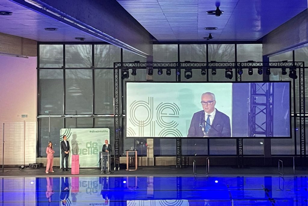 Tijdens de ceremonie hield de burgemeester een toespraak, en met een symbolische druk op de knop werd het zwemcentrum officieel geopend.
