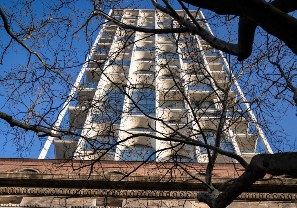 In de Cartesiusdriehoek in Utrecht wordt volop gewerkt aan het iconische CAB-gebouw.