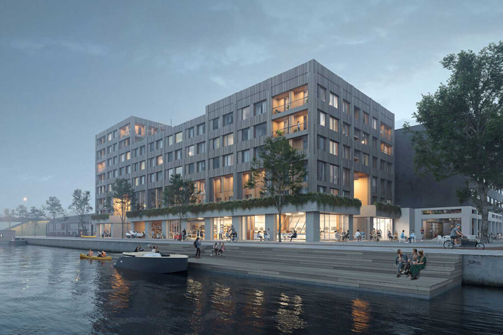 Woongebouw van 25 appartementen met verdiepte parkeerkelder, natuurinclusief en klimaatadaptief met houten terrassen en uitkragende balkons