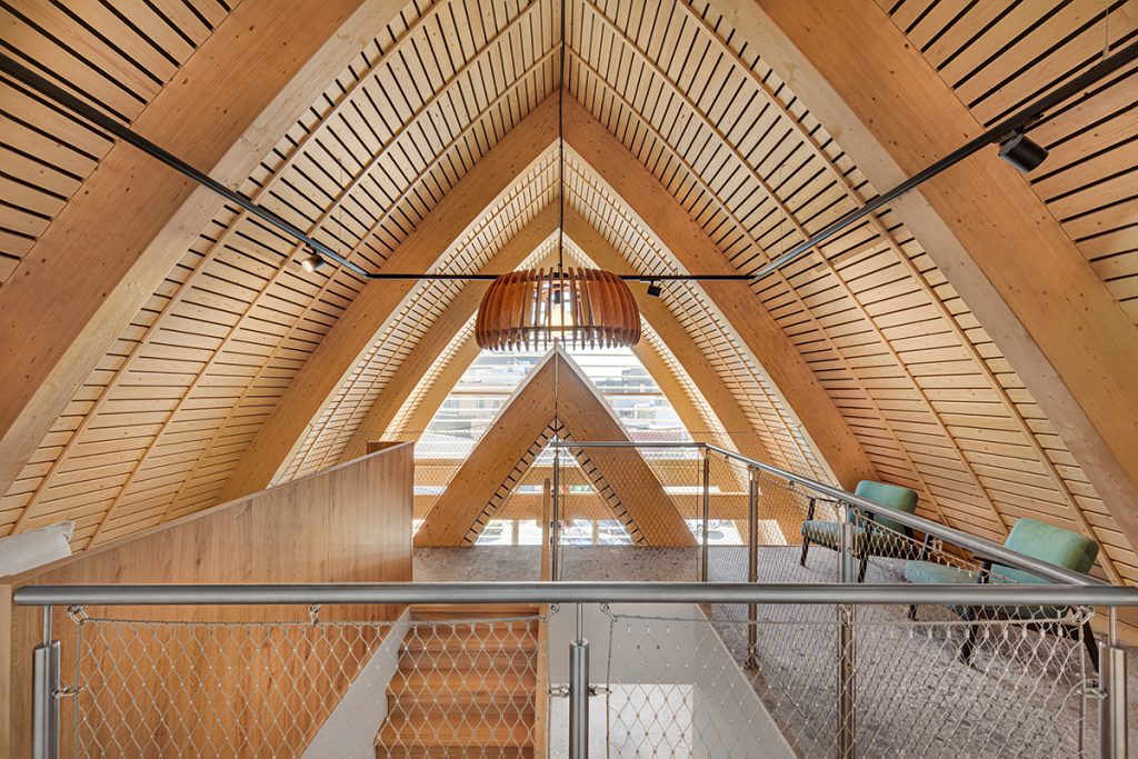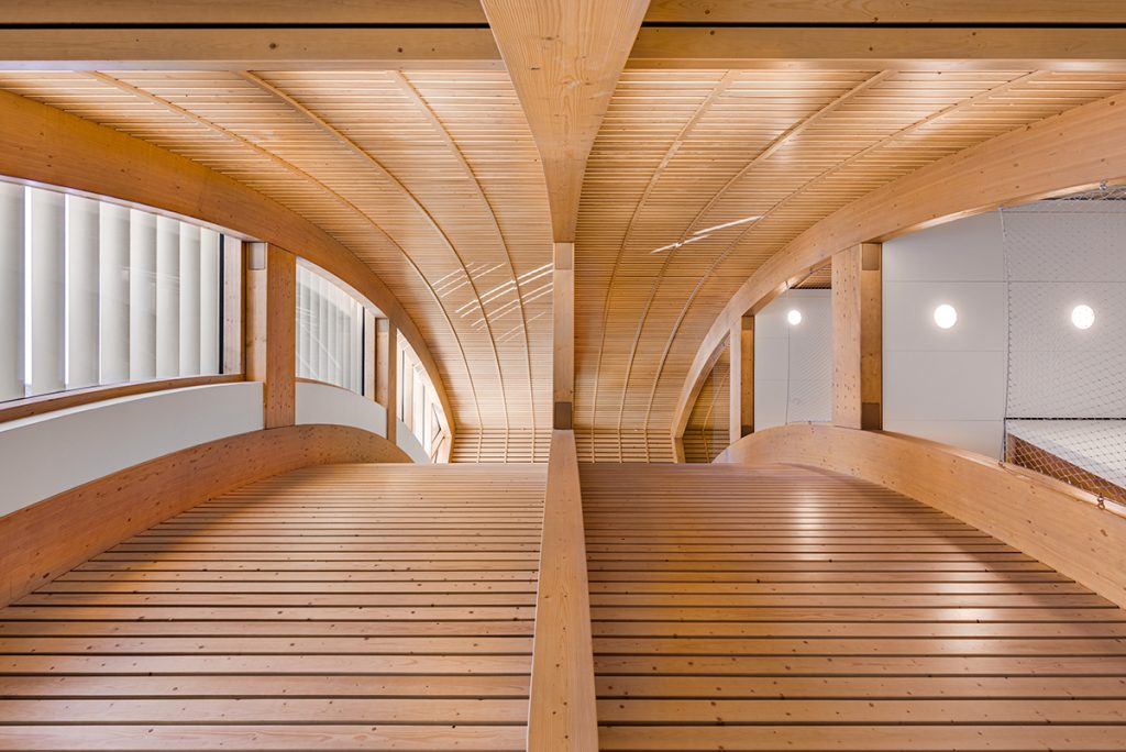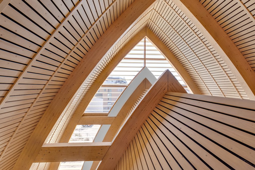 Duurzaam en flexibel gebouw met supermarkt van de toekomst, café en gezondheidscentrum, in volledig houten draagconstructie