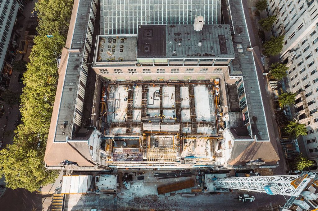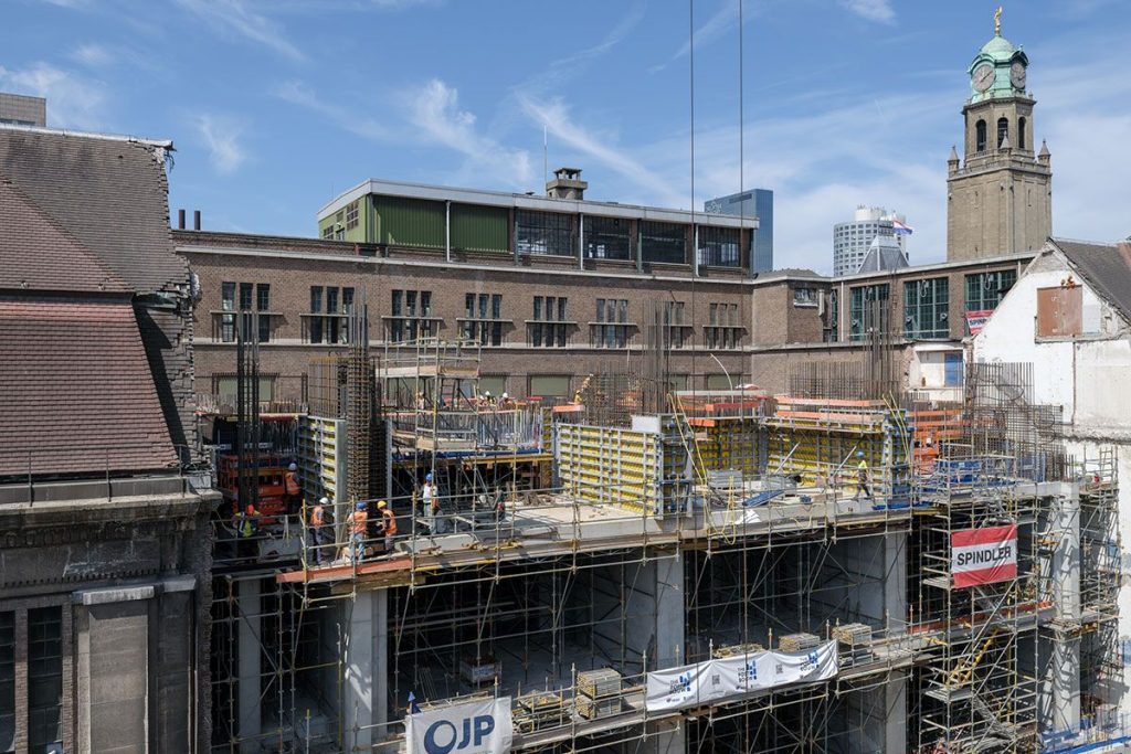 POST Rotterdam publiceerde onderstaande video van de bouw tijdens de zomer van 2023, waarin de wafelbalken goed zichtbaar zijn.