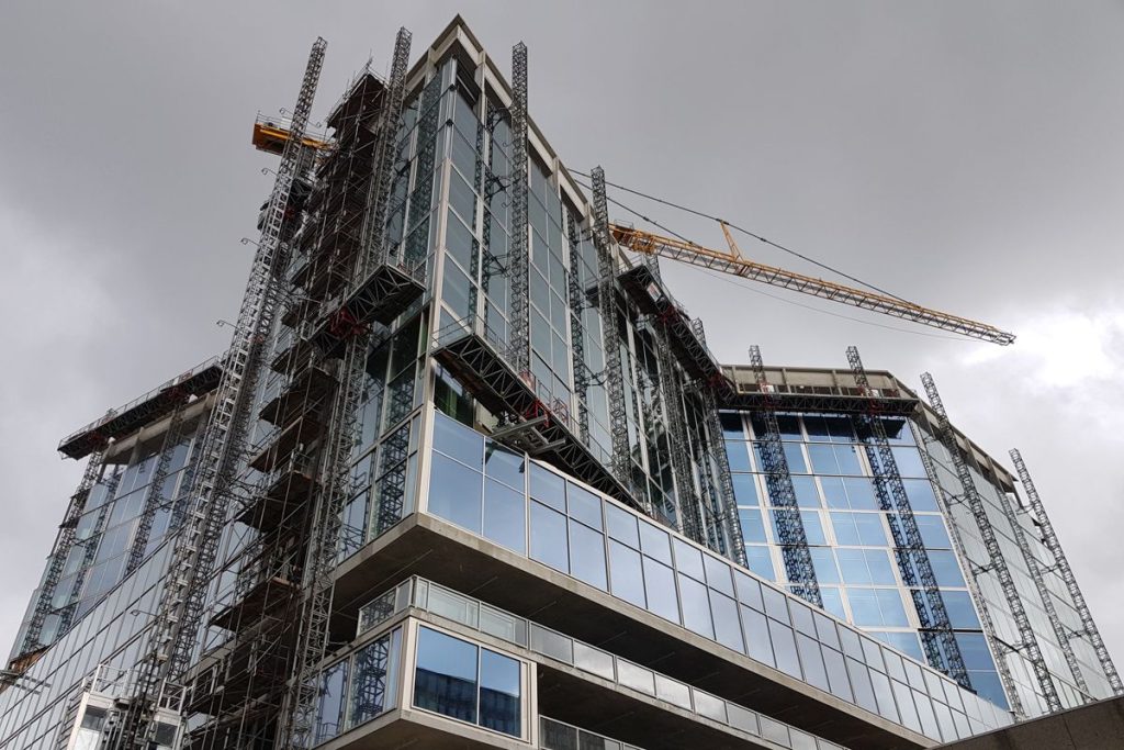 Voor de onderste zes verdiepingen is een veel meer open plattegrond gewenst zonder dichte wanden. Hiervoor is een eigen constructief systeem van toepassing met kolommen en een vlakke plaatvloer. Hiervoor worden in het werk gestorte vloeren toegepast gecombineerd met voorspanning met aanhechting (VMA). Hiermee kan een balkloze vloer worden gemaakt en de vloerdikte beperkt blijven tot 300 mm. Om de twee verschillende draagstructuren op elkaar aan te sluiten is ter hoogte van de 7e verdieping een tafelconstructie ontworpen van 900 mm dikte. De prefab kolommen welke onderin het gebouw oplopen tot 850×850 krijgen een organische vorm en zijn ‘willekeurig’ in de plattegrond geplaatst, waardoor het een soort bomen lijken.