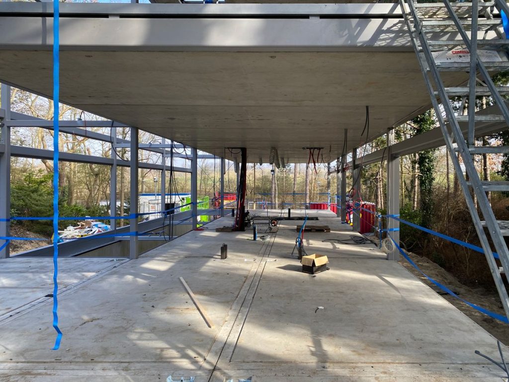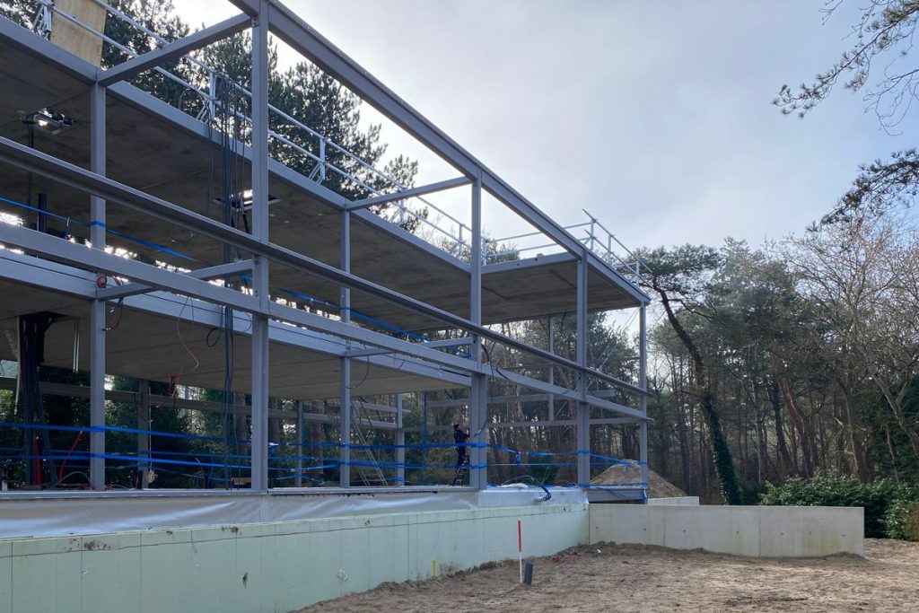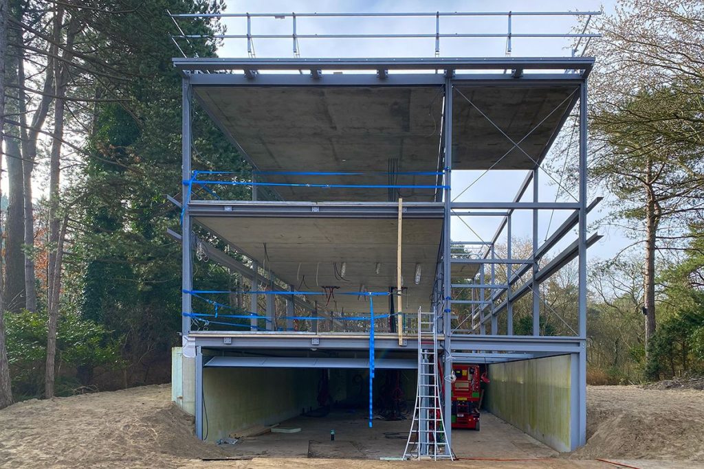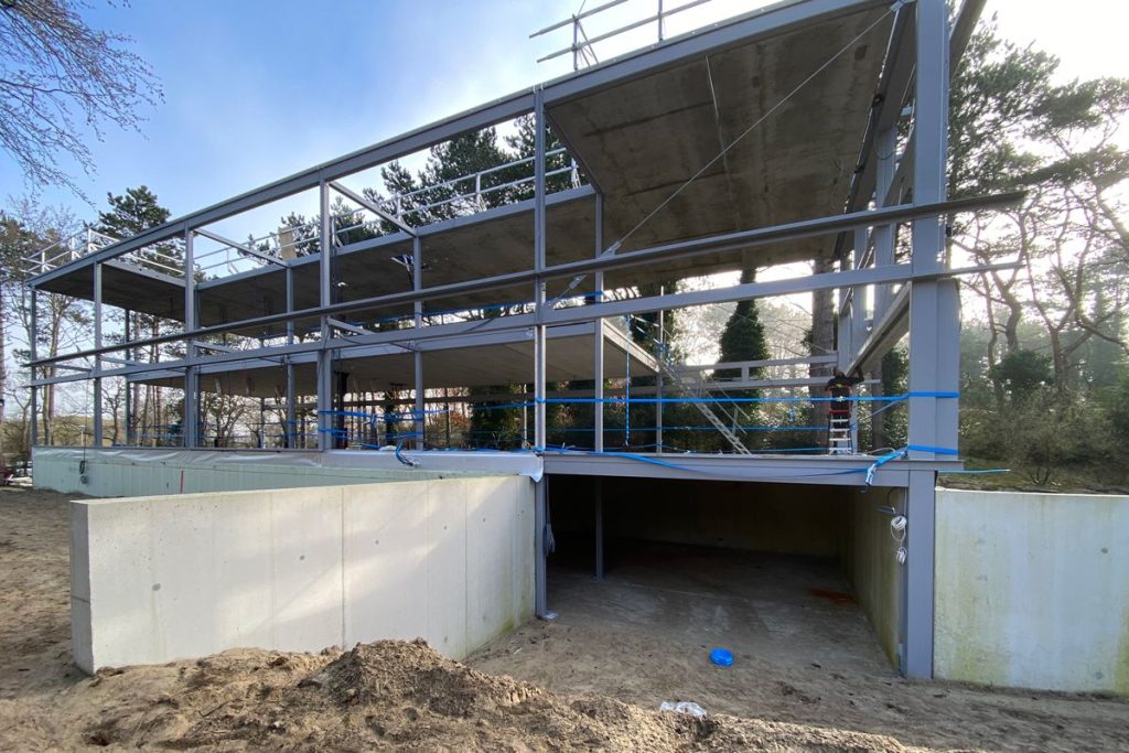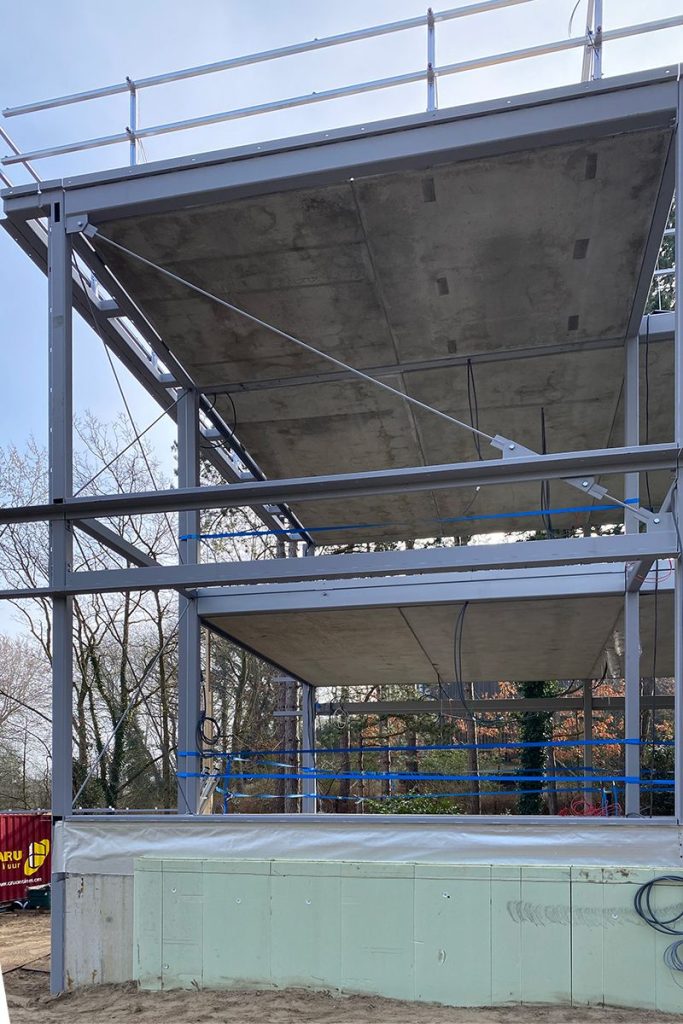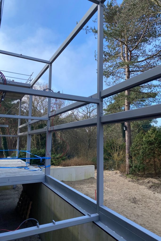 De woning is gemaakt met een staalskelet vanaf de begane grondvloer. De vloeren zijn slimline vloeren, staalprofielen met een prefab betonnen onderschil en prefab betonplaten als dekvloer. Onderdeel van de fundering (op staal) is het onderliggende betonnen souterrain dat waterdicht en grondkerend moest zijn.