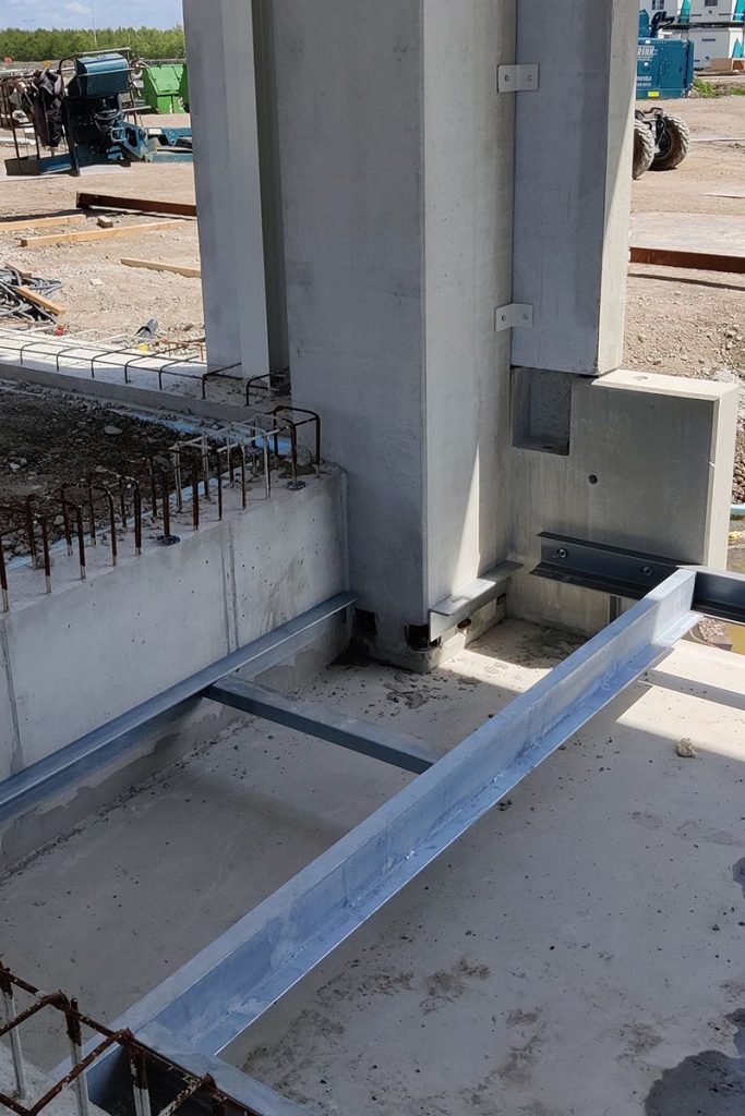 De prefab betonnen kolommen staan in een stramien van 22 x 24 m en verzorgen de stabiliteit en zijn ingeklemd in de fundering. Hierdoor is de hal nagenoeg vrij indeelbaar. De stekken van de kolommen zijn dusdanig uitgevoerd, dat de kolommen op een eenvoudige wijze te demonteren zijn.