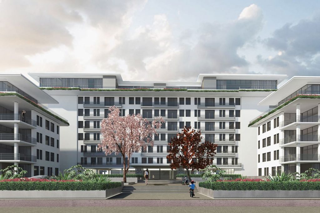 Transformatie van leegstaand kantoorgebouw naar 319 woningen met behoud van groen, extra bouwlaag en moderne gevelisolatie